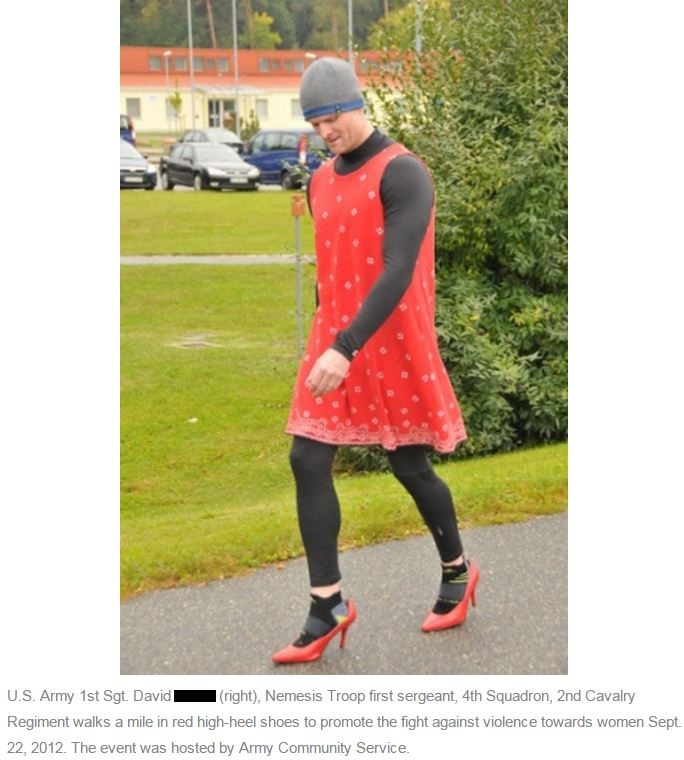 I recently heard about ROTC Cadets being required to take part of an awareness exercise against rape, domestic violence and gender abuse that required the male cadets to “Walk a mile in her shoes.” I was so taken back by the photos above and I decided to research the incident to learn more about it. To my surprise, this was not a new thing but has actually been going on all over the country for a while now and has even gone international.